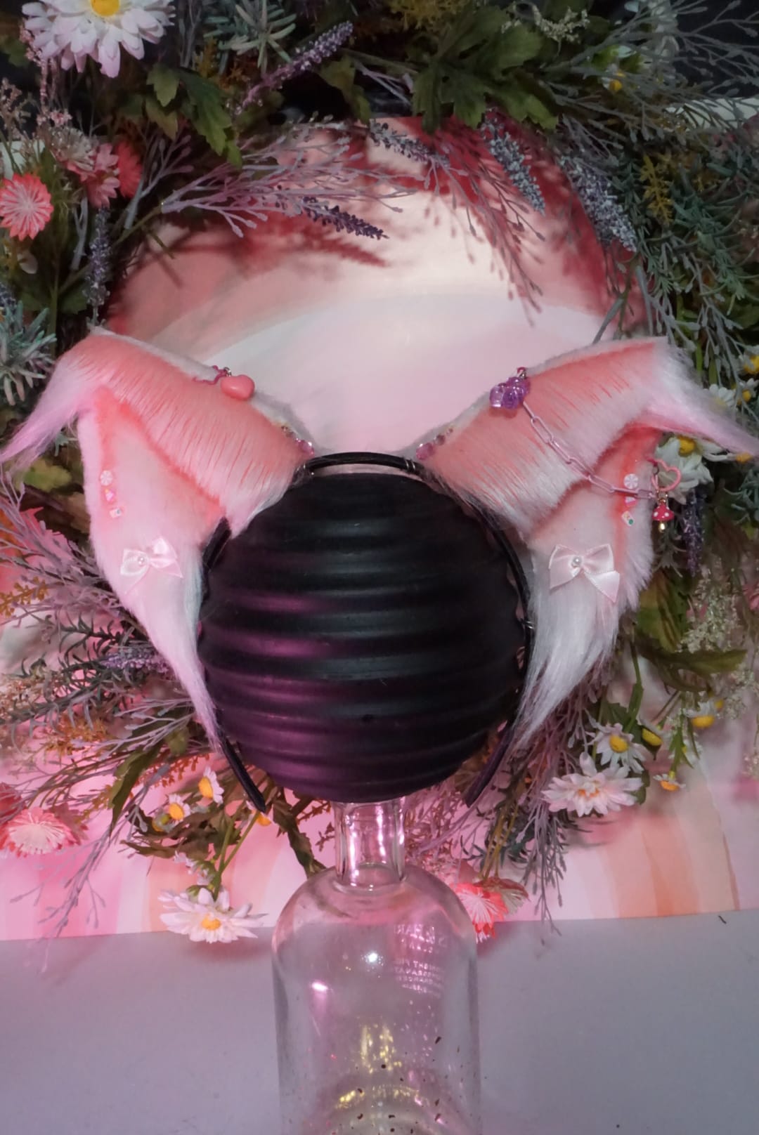 Ears are Half wired (not wired at the tip of ear/not posable) on black fabric headband.