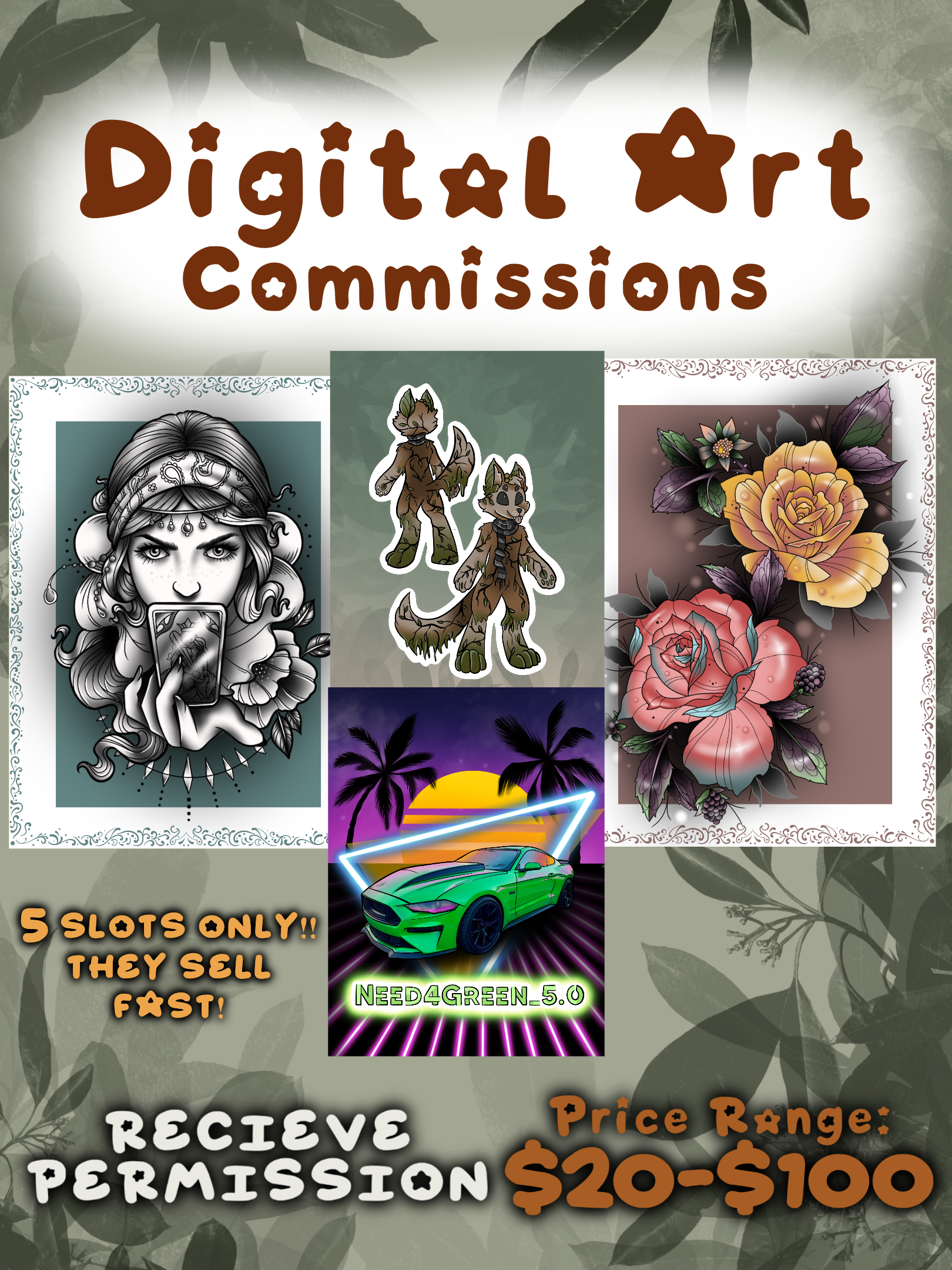 Are you looking for a new profile picture, logo or drawing to give for the holidays? Look no further! I am bringing back my commissions for only a limited time to help with my recovery and surgery. Any style, any colors and any prompt! There are no more slots available for this commissioned offer! Below is what is included in this Digital Art Package!