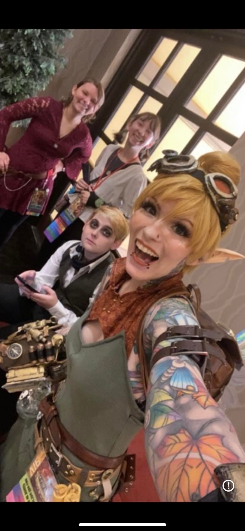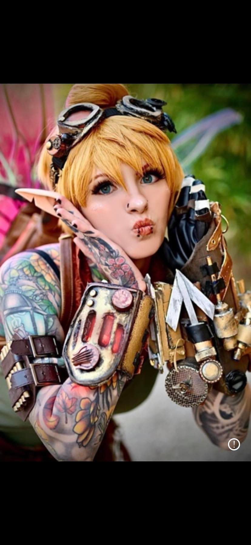 "While growing up, I was always nicknamed as 'Tink' or 'TinkerBell' due to the constant sass, the blonde hair, and of course being able to tinker around the house with anything I could get my hands on. In 2012 my mom had dressed me up as TinkerBell for Halloween and I remember loving that outfit so much. Throughout years later, I took it upon myself to make my own rendition of TinkerBell as a SteamPunk outfit. I had used Gauntlets and other accessories from Cosplays I already had to put this outfit together. The dress, however was made especially for Steampunk TinkerBell. I’ve always loved cosplaying as her just because I have been able to interact with kids as a well known Disney character and be able to put a smile on others faces!"
