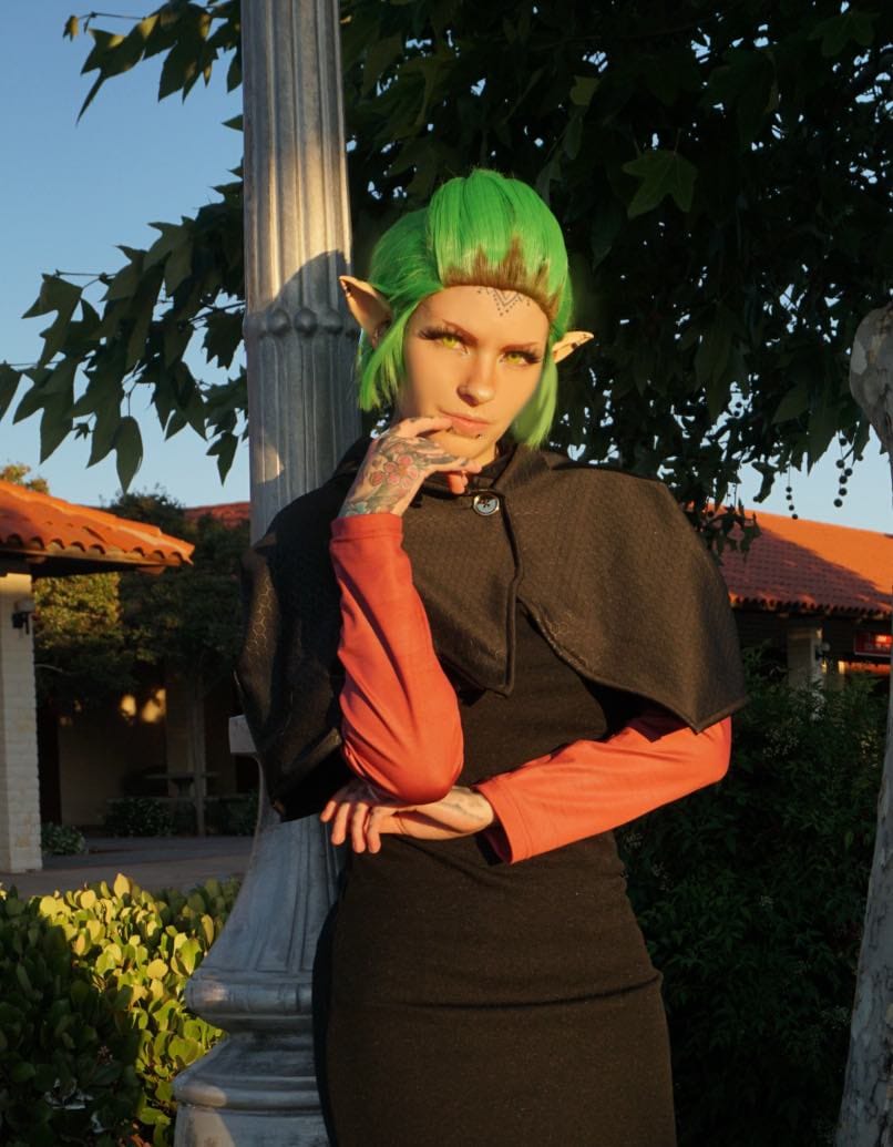 "This cosplay was extremely easy to throw together and I am insanely happy with the way it turned out! Especially the wig, where I used tacky glue and eyeshadow to give it the design desired. I do plan on posting her more soon as well as adding her to a website theme and subscriptions for August of 2024!"