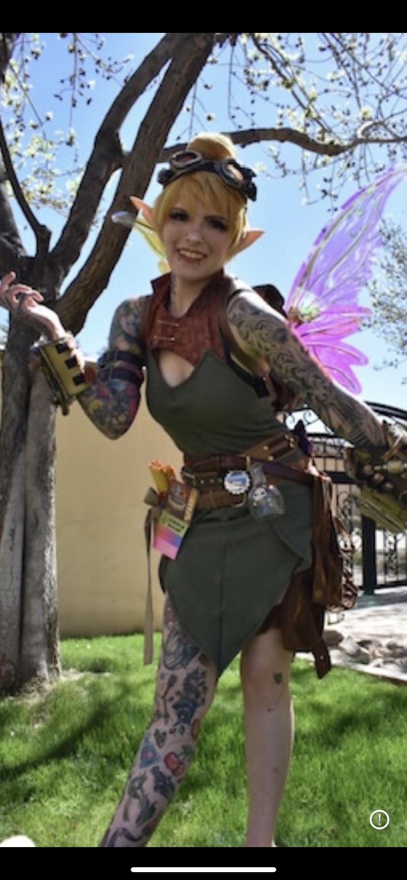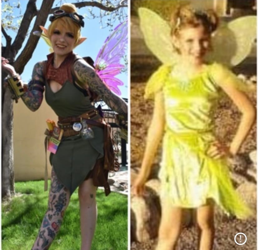 Growing up, LarpLikeRae was always nicknamed 'Tink' short for 'Tinkerbell'! From a costume that was originally worn in 2012 as a Halloween costume, Rae took it upon themselves to Cosplay as Tinker Bell yet again in 2024 as their own rendition.