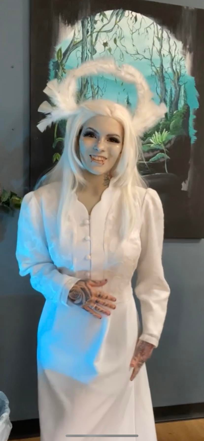 “Emily was a cosplay I threw together quickly after finding a white dress at goodwill! I quickly made her cosplay but didn’t like it much or the way it turned out. I tattooed as her but never edited the video since it wasn’t a favorite of mine. I have a feeling I will either retire her cosplay all together or try to actually make her cosplay as accurate as I possibly can. It depends on how the cards will play out in the future.”