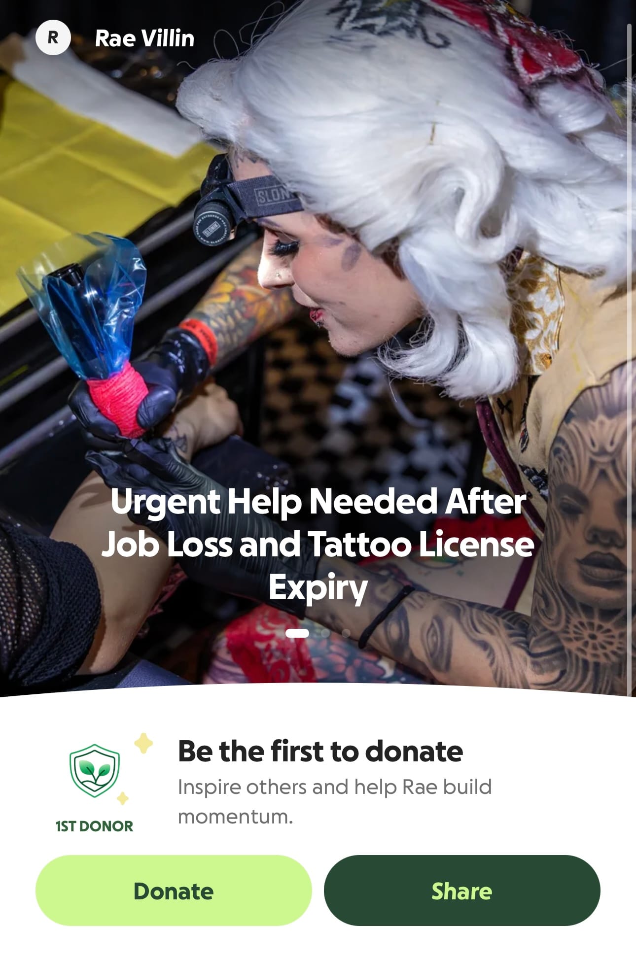 I was just let go from my job, my tattoo license expired, and I have no way to pay rent! I just moved to Oregon from Arizona 3 months ago, and the shop just let me go due to downsizing. If I knew the shop was downsizing, I wouldn't have gotten a house already. At the same time of this, my tattoo license has expired and I need to get a new one (having to wait 8 days) Please help in any way you can. Anything will help!