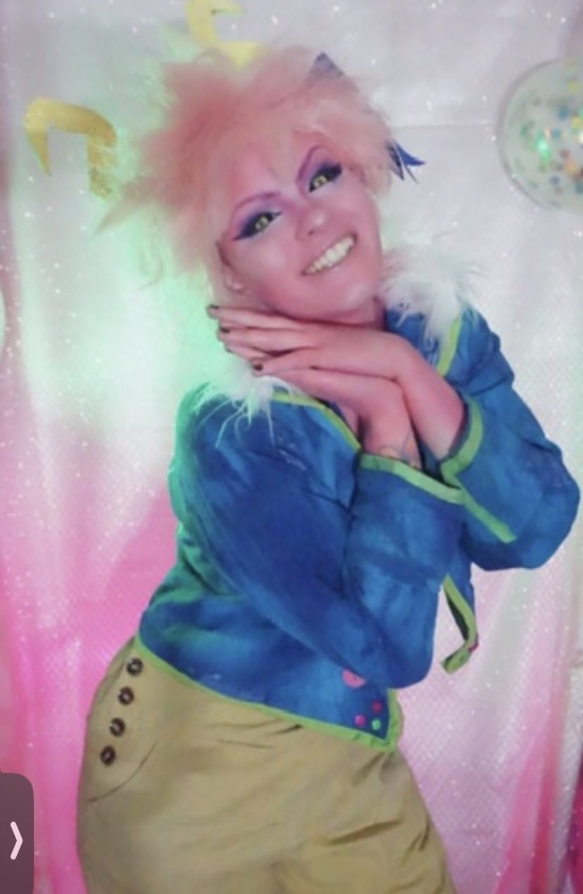 "One of my least favorite parts about cosplaying has to be facepaint. Face paint in my opinion is rough, I hate how it feels on my skin and the aftermath of being stained to matter how well I tried to get it off. Lately I have been resulting to using Sunset Makeup's Colored Foundation instead and it works so much better and leaves my skin feeling amazing afterwards. It has the consistency of foundation and barely comes off on clothing or hands. I discovered Colored Foundation in 2024 however, so the years prior while cosplaying as Mina and any other character that requires neon colored skin I had used cream face paint which was such a HORRIBLE MISTAKE."