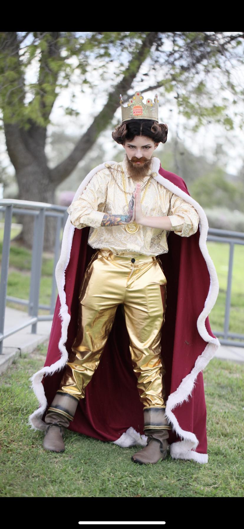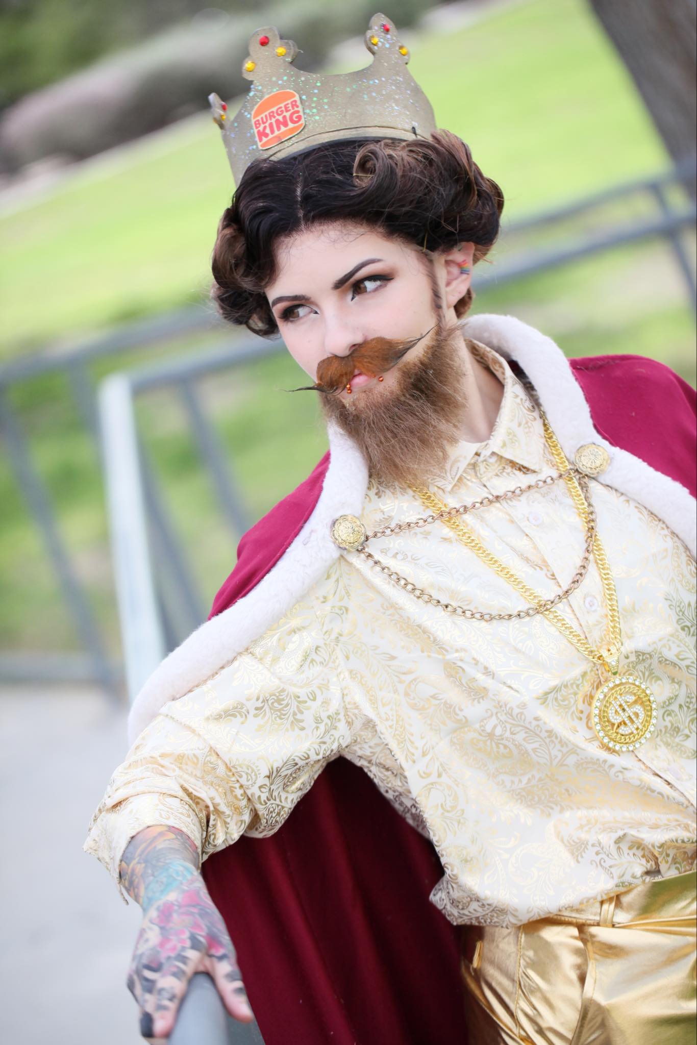 "I think one of the funniest cosplays I have ever done is my Burger King cosplay solely because it was an inside joke made a reality. In the beginning of 2023, I was on a discord call with some of my followers and members brainstorming on some cosplay ideas for that Metrocon in July. Everyone wanted to do fast food mascot cosplays and everyone demanded that I would be Burger King. The funny part is that I am allergic to Burger King so I knew it would be funny to cosplay as him if I couldn't have the food. Majority of the cosplay was bought except the crown and the cape! This cosplay has been one of my favorites of all times and I never plan on retiring him! I do have to be careful with smiling, laughing or sneezing in this cosplay unless I want my mustache to yeet off and hit a child."