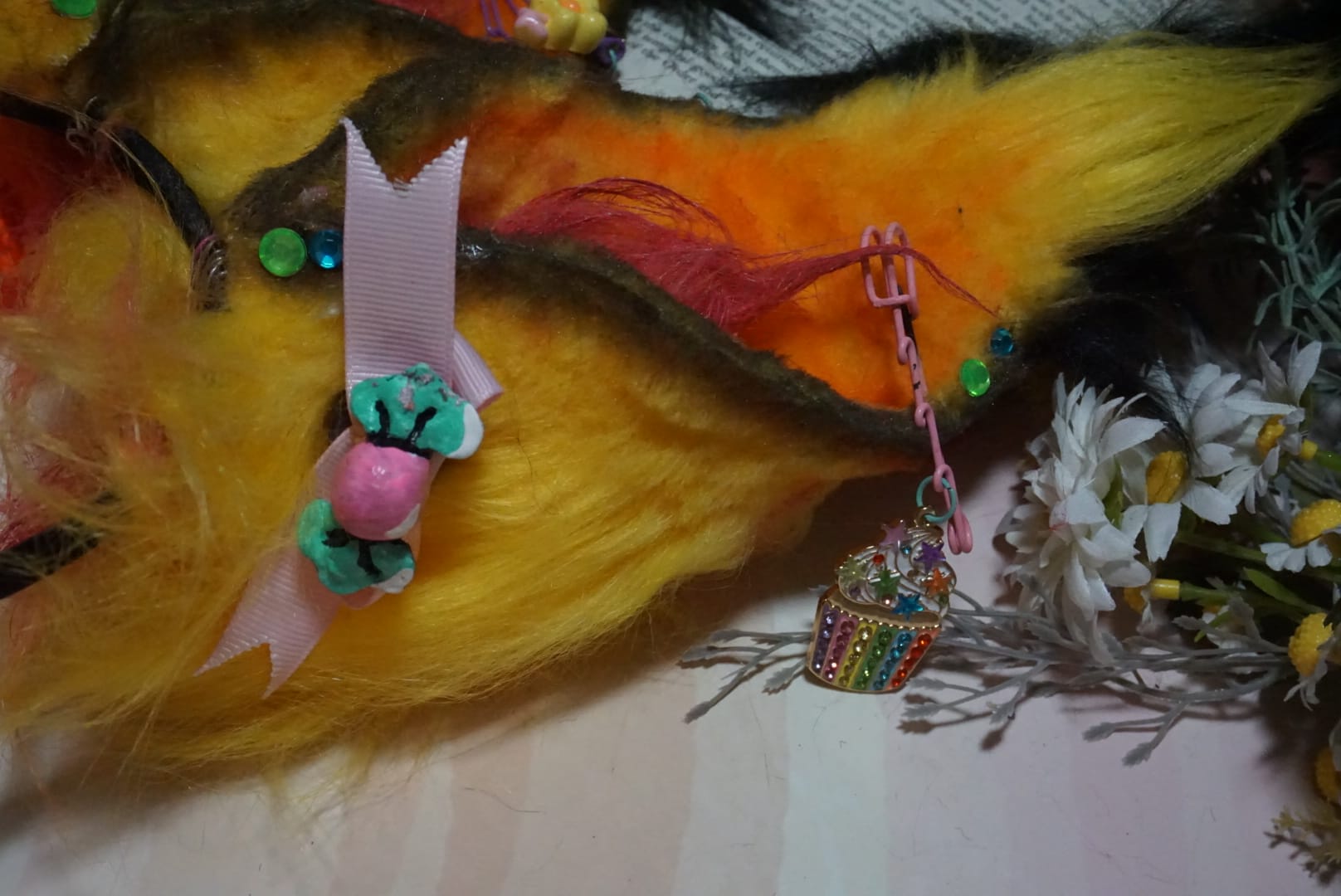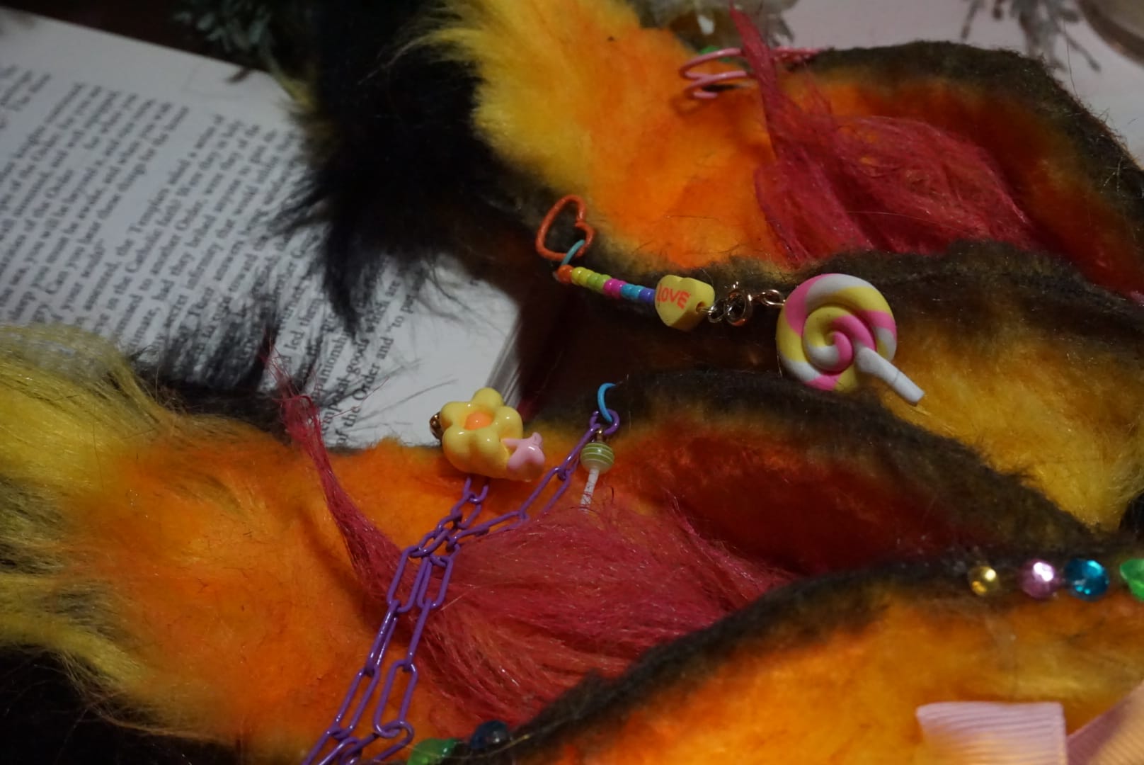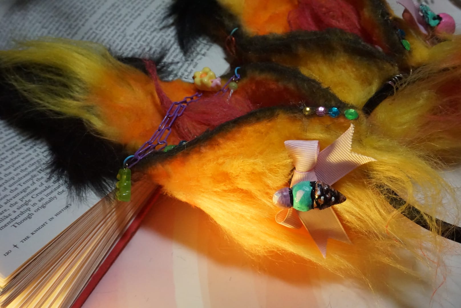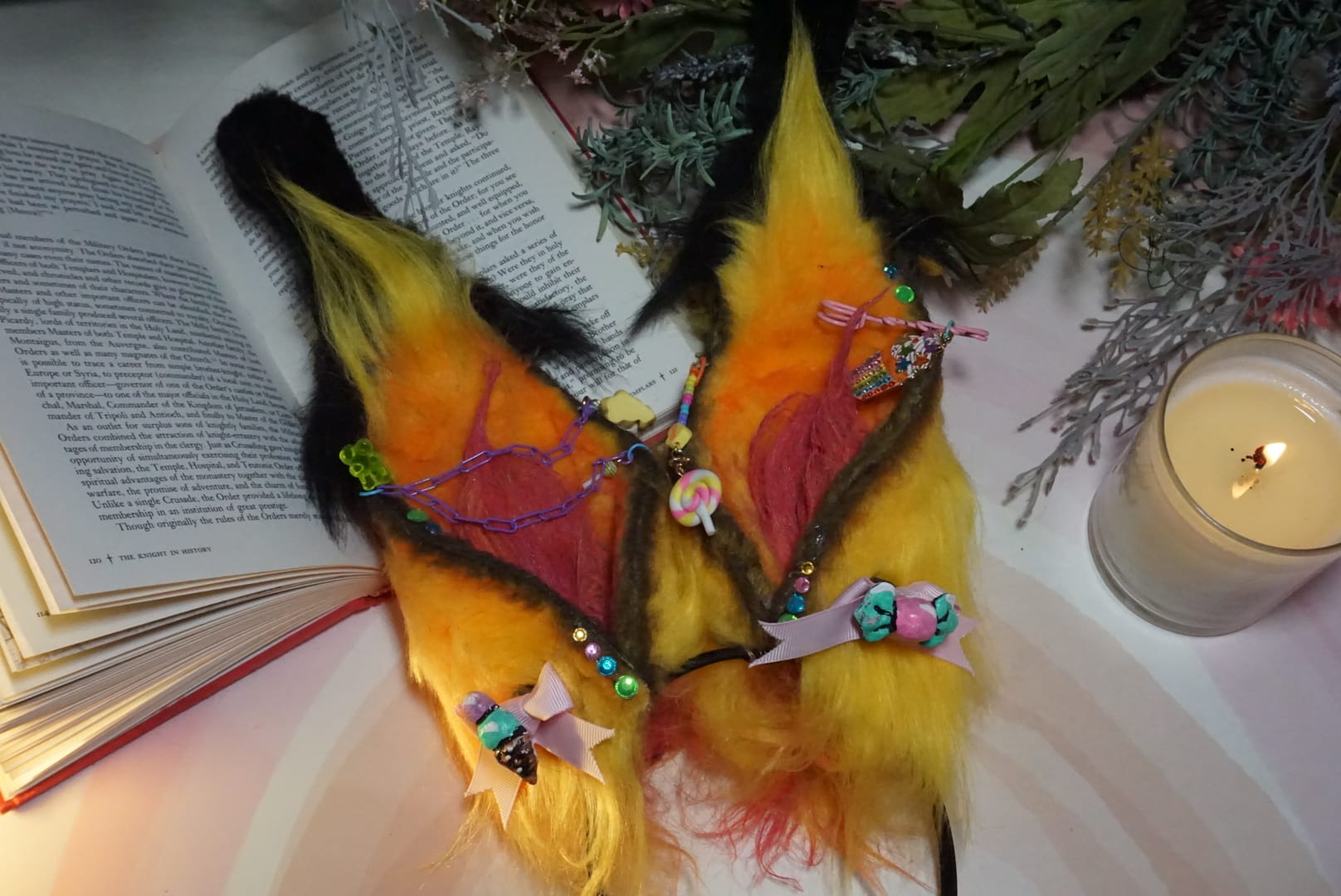 Faux Fur Large ears on headband in Full Yellow and Black - Ready to Ship