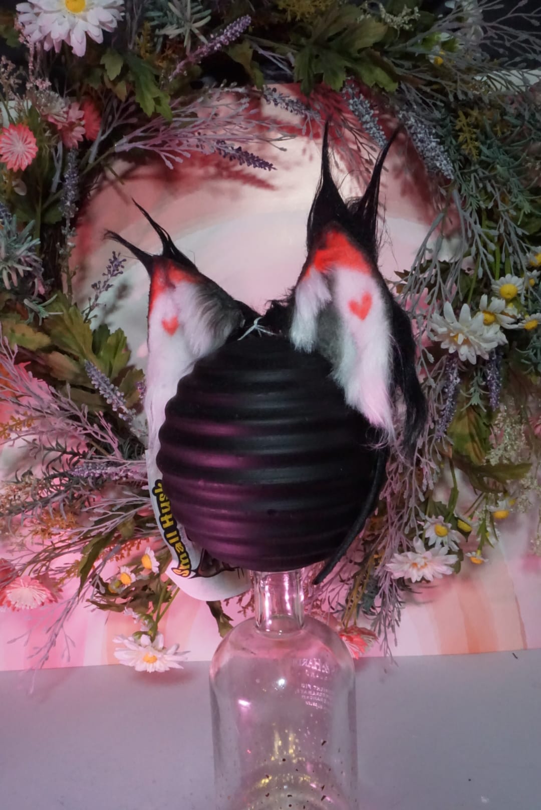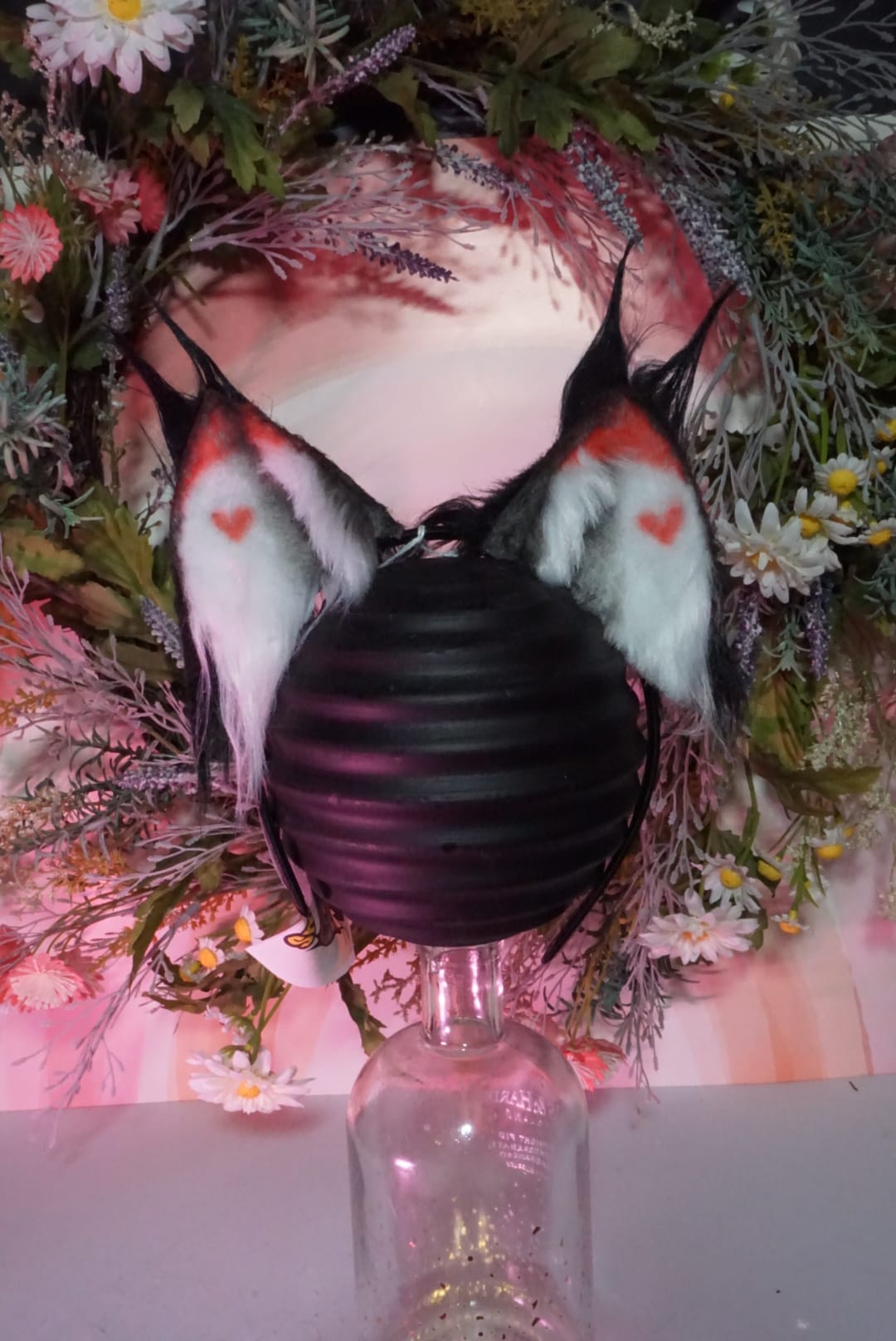 Ears are Half wired (not wired at the tip of ear/not posable) on black fabric headband.