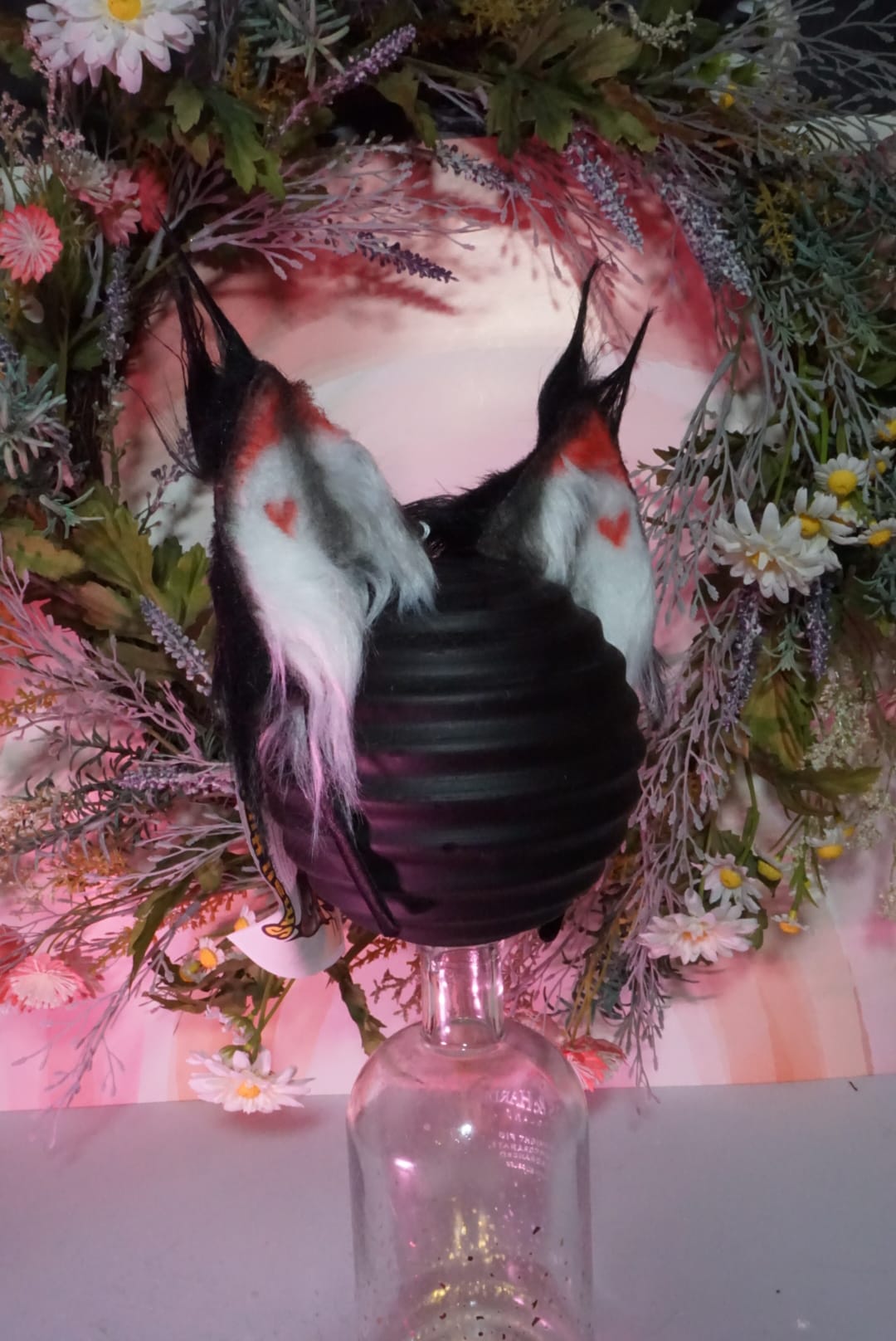 Faux Fur kitten ears on headband in half black and white - Ready to Ship